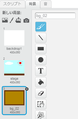 スプライトリストエリアから背景を追加したり、削除したりすることができます。