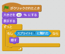 隠すブロックを利用すると、スプライトを消すことができます。
