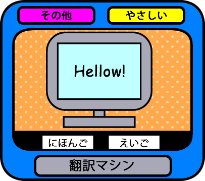 にほんごボタンを押すと、日本語に翻訳。えいごボタンを押すと英語に翻訳する。