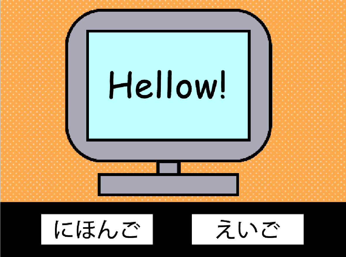 にほんごボタンを押すと、日本語に翻訳。えいごボタンを押すと英語に翻訳する。
