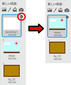 スプライトリストエリアから背景を追加したり、削除したりすることができます。