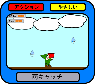 スプライトを左右に動かして、振ってくる雨をバケツでキャッチする。