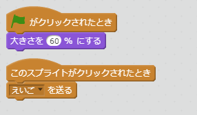 えいごボタンがクリックされたら、メッセージ「えいご」を送ります。