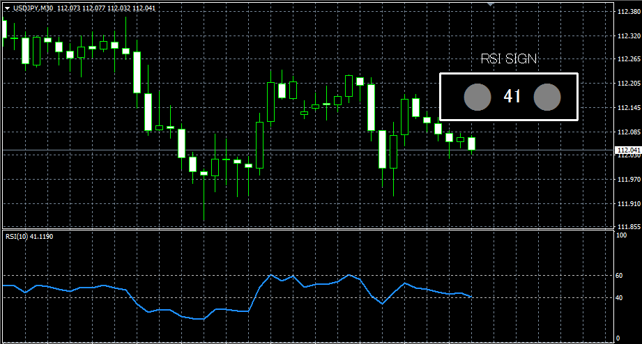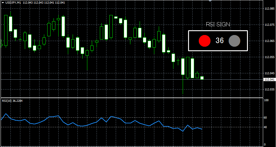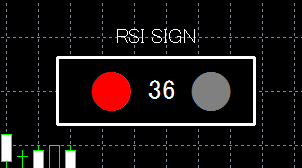 RSIの値が40より小さいときは、左の丸(ランプ)が赤く点灯するようにして、40以上のときは、消灯するようにしていきます。