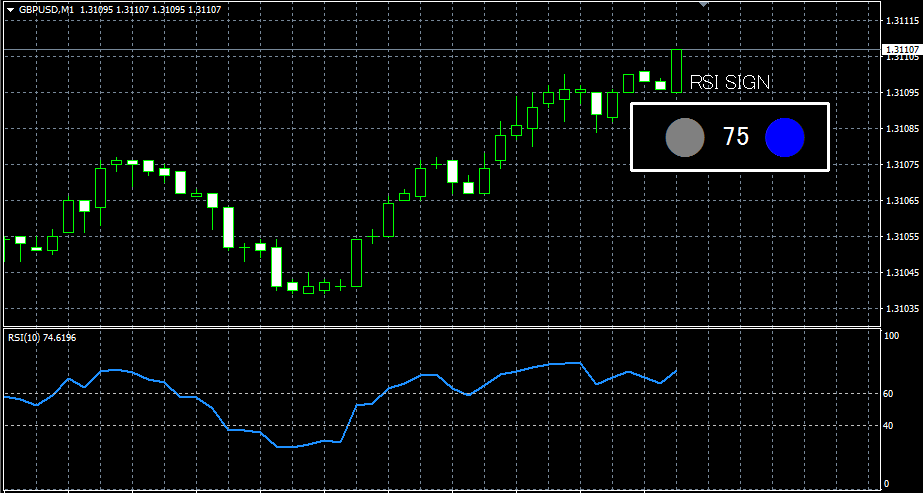 次に、RSIの値が60以上のときは、右の丸(ランプ)が青く点灯するようにして、60未満のときは、消灯するようにしていきます。