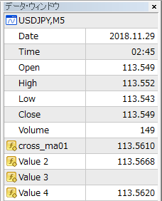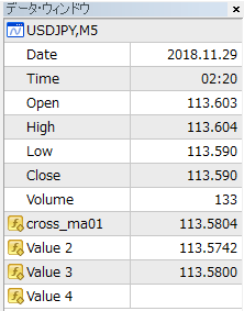 データウインドウのインジゲーター名から下のvalue2~value4までの当てはまるところに値が入ります。