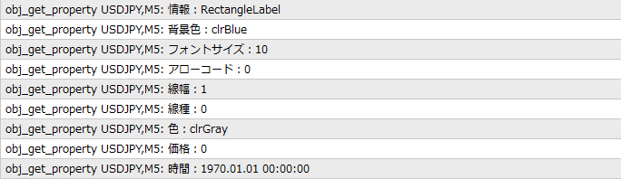 次に、オブジェクトの情報を取得するEAを動かすとログに以下のように表示されます。