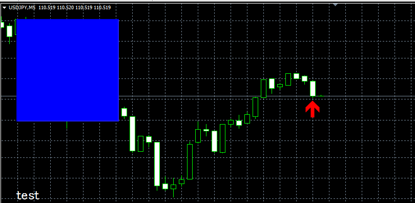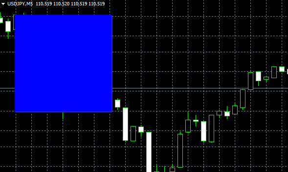 チャートウインドウの左上を基点にX座標とY座標を指定して四角形を作りました。