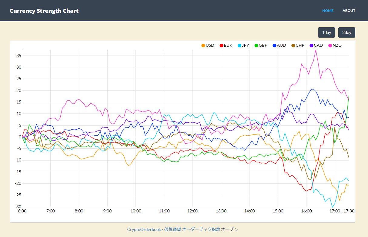 このツール(Webサイト)は、通貨の強弱が視覚的に分かりやすいもので、