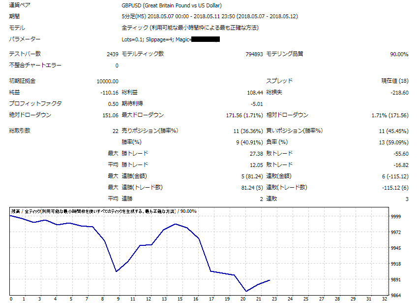 私が作ったEA(CROSS_MA01_EA)でバックテストしてみました。