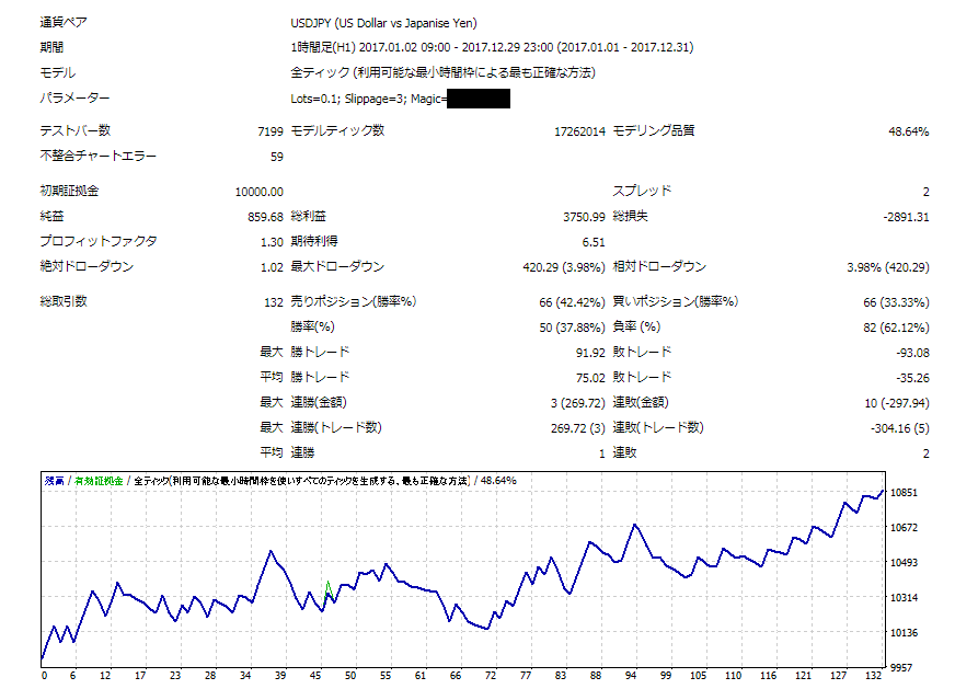 ※結果はあくまでバックテストテスターを利用した結果です。実際のトレードとは異なる場合があります。