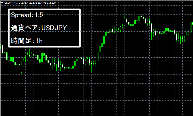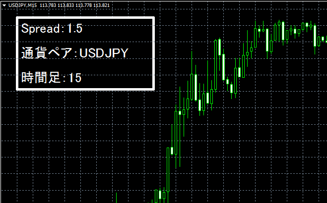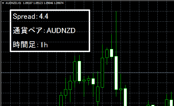 ⑥ObjectSetText("spread","Spread:"+spread,20,"MS ゴシック",clrWhite);