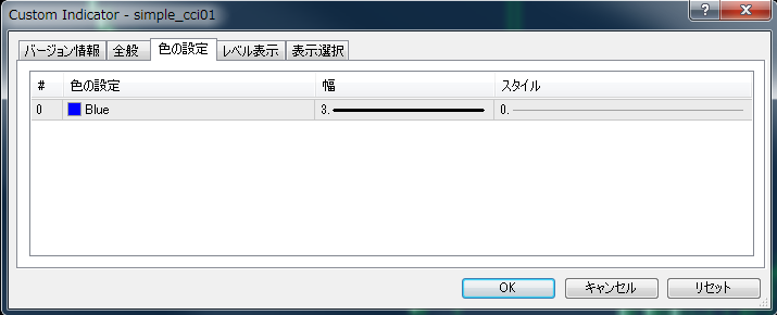 インジゲータのラインの太さ(幅)を指定する。今回は3を使用。