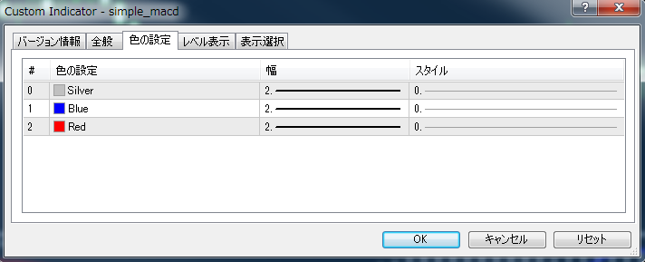 ここでは、2番目のインデックスに指定したBufMACD_SIGNALの設定を指定。