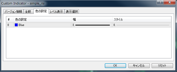 インジゲータのラインの太さ(幅)を指定する。今回は3を使用。