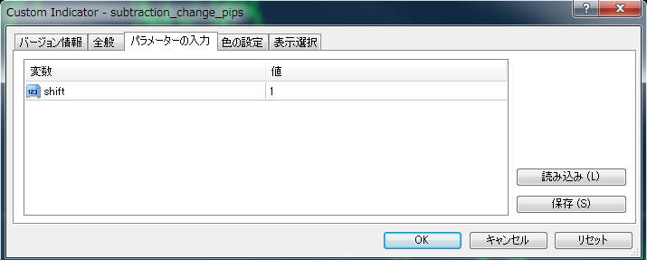 外部パラメーターの設定。何本前の足にするか設定。パラメーターで変更可能。初期値は1を指定。